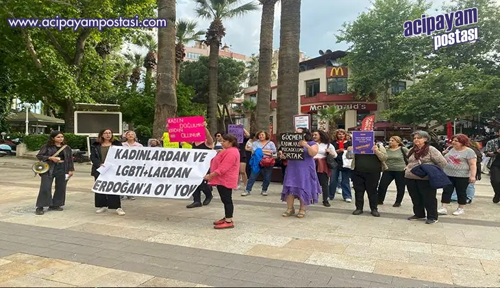 Denizli’de Kampüs Cadıları, Mor Dayanışma ve Direnişin Renkleri çağrılarıyla Candoğan Parkı önünde bir araya gelen kadınlar basın açıklaması okudu. Sloganlarla alana gelen kadınlar adına açıklamayı Mor Dayanışma Adına Fatoş Alcalı okudu. Alcalı, "28 Mayıs'ta bu kadın düşmanı iktidarı örgütlü gücümüzle göndereceğiz. Yeniden Refah Partisi, HÜDA PAR, gibi partileri meclise taşıyarak kadın düşmanlığını pekiştiren AKP- MHP iktidarına kaybettireceğiz. Sokağa çıktığımızda güvensiz hissetmediğimiz, her an öldürülme korkusu yaşamadığımız bir hayatı kurmak için mücadelemizden asla vazgeçmeyeceğiz. Tüm eşitsiz koşullara rağmen irademiz, öfkemiz, direncimiz var. Biz kadınlar en zor anlarda bile hayatımıza, haklarımıza, özgürlüğümüze sahip çıkmayı başardık. Karanlığa karşı umut olduk kazandık. Kadın düşmanlarının halk düşmanlarının saltanatını yıkmak için kadınlara çağrı yapıyoruz. Sandığa git, Erndoğan’ı gönder. Sandıklarda müşahit olalım, oylarımıza, hayatımıza geleceğimize birlikte sahip çıkalım” dedi