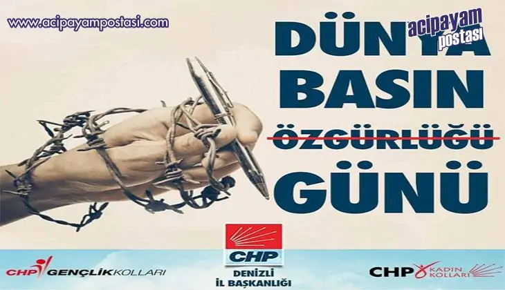 Bugün 3 Mayıs Dünya Basın Özgürlüğü günü. Sınır Tanımayan Gazeteciler: Türkiye Dünya Basın Özgürlüğü Endeksi'nde 180 ülke arasında 165. Sırada yer alıyor ve seçimler öncesi gazetecilere baskılar da artıyor. CHP Denizli İl Örgütü de buna dikkat çekmek amacıyla sosyal medya üzerinden bir paylaşımda bulundu.