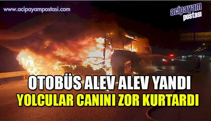 Olay, Aydın-İzmir Otoyolu Söke Kavşağı'nda saat 21.30 sıralarında meydana geldi. Edinilen bilgiye göre, Muğla-İzmir seferini yapan bir otobüs firmasına ait yolcu otobüsünde seyir halindeyken henüz bilinmeyen bir nedenle yangın çıktı. Alevleri fark eden ve büyük şok yaşayan yolcular can havliyle otobüsten indi. 112 Acil Çağrı Merkezi'ne yapılan ihbar üzerine bölgeye itfaiye, polis ve sağlık ekipleri sevk edildi. Alevler kısa sürede tüm otobüsü sararken, olay yerine gelen Aydın Büyükşehir Belediyesi İtfaiye Daire Başkanlığı ekipleri yangına müdahale ederek söndürdü. Yolcular itfaiye ekiplerinin çalışmalarını korku dolu gözlerle izlerken, tamamen yana otobüs kullanılamaz hale geldi. Yangında ölen ya da yaralananın olmaması teselli kaynağı oldu. Olayla ilgili soruşturma sürüyor.