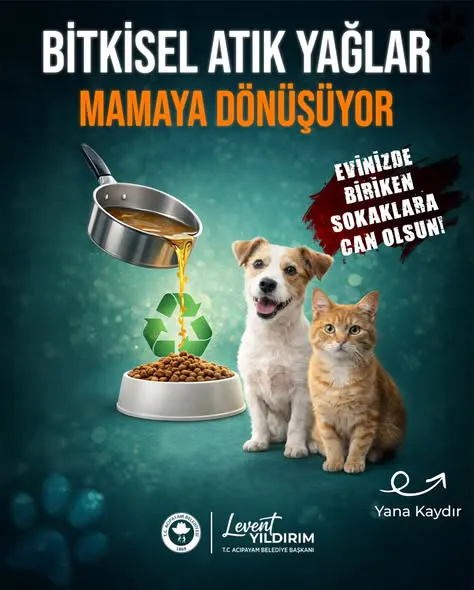 Acıpayam Belediye Başkanı Levent Yıldırım, bitkisel atık yağların doğaya zarar vermeden geri dönüşüme kazandırılması ve sokak hayvanlarına destek olunması amacıyla vatandaşlara çağrıda bulundu.