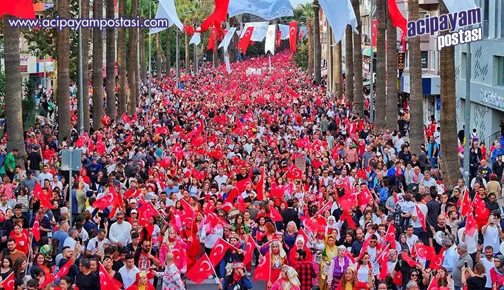 Denizli Valisi Coşkun ise, herkesin Cumhuriyet Bayramı’nı kutlayarak, “Bugün Denizli'de tarihi bir gün yaşıyoruz. Katılımınızdan dolayı bütün Denizlili hemşerilerimize teşekkür ediyorum, şükranlarımı sunuyorum. Bundan tam 100 yıl önce Gazi Mustafa Kemal Atatürk'ün başkomutanlığında Kurtuluş Savaşı’nın zaferle sonuçlanmasından sonra Cumhuriyetimiz kurulmuştur. Ecdadımızdan gelen bu mirası bizler de geleceğe, genç neslimize, gelecek kuşaklara teslim etmek zorundayız. Bu anlamda Cumhuriyetimizin 100'üncü yılında ben bütün vatandaşlarımızın ecdadımızdan aldığımız bu mirası geleceğe güvenle taşıyacaklarını olan inancım tamdır. Tekrar birliğimiz, beraberliğimiz daim olsun inşallah. Daha nice 100 yıllara diliyorum” dedi. Konuşmaların ardından protokol üyeleri ve meydanı dolduran Denizlililer büyük coşku içinde, Ölürüm Türkiyem, 10. Yıl Marşı, 100. Yıl Marşı ve İzmir Marşı’nı söyleyerek Türk bayrakları sallayarak eşlik etti.