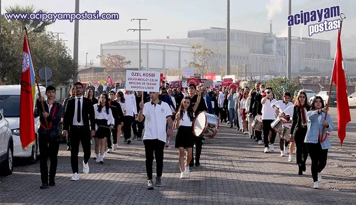 İzmir’ de Kemalpaşa Organize Sanayi Bölgesi (KOSBİ) Yönetimi ve idari kadrosu, KOSBİ Zülfü Mevlüt Çelik Mesleki ve Teknik Anadolu Lisesi öğrencileri ile beraber 100. Yıl yürüyüşü yaptı. KOSBİ İdari Binası’ndan bando eşliğinde başlayan yürüyüş, KOSBİ Zülfü Mevlüt Çelik Mesleki ve Teknik Anadolu Lisesi’nde son buldu. Burada yapılan törende 29 Ekim Cumhuriyet Bayramı kutlandı. KOSBİ Zülfü Mevlüt Çelik Mesleki ve Teknik Anadolu Lisesi öğrencileri düzenledikleri yürüyüş ile 29 Ekim Cumhuriyet Bayramı’nı ve Cumhuriyetin 100. yılını kutladı. Yürüyüşe KOSBİ yönetimi ve idari personel tam kadro olarak katılırken, yürüyüş sonrası okulda yapılan törene Kemalpaşa Kaymakamı Musa Sarı da katıldı. Öğrenciler vals gösterisi yaparken, okul bölümleri kendi alanlarında öne çıkan tarihi karakterlerini tanıtan birer gösteri yaptılar. Tarihten günümüze mesleki eğitimin dönemlerini yansıtan bir fotoğraf sergisi de açılırken, ahilik geleneğinden günümüze mesleki eğitim de canlandırmayla yansıtıldı. Törenin sonunda tüm öğrenciler hep bir ağızdan ‘Atatürk’ün Gençliğe Hitabesi’ni ezbere okudular.