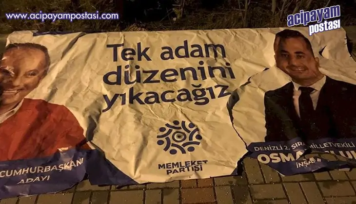 14 Mayıs’ta gerçekleşecek olan seçimlere 1 hafta kala, Memleket Partisi ve Milletvekili Adaylarının afiflerine yapılan saldırılar sürüyor. Denizli’nin Çivril ilçesinde yapılan saldırının ardından gece de Merkezefendi İlçesinde de afişleri çirkin saldırılar düzenledi. Kimliği belirsiz kişi ya da kişilerin yaptığı saldırılara tepkisini gösteren Memleket Partisi Denizli 2. Sıra Milletvekili Adayı Osman Uluköy, “Biz Memleket Partisini vatandaşlarımızı iki kutup arasında sıkıştırmamak, siyasete nezaket getirmek, milleti barıştırmak, ortak paydaşlarımızı, umudumuzu arttırmak, ekmeğimizi büyütüp eşit şekilde paylaştırmak niyetiyle kurduk. Bu ülke kavga siyasetinden bıktı ama biz parti olarak kurulduğumuzdan beri biz şeytan taşlamaktan tavaf edemez hale getirilmeye çalışılıyoruz” dedi.