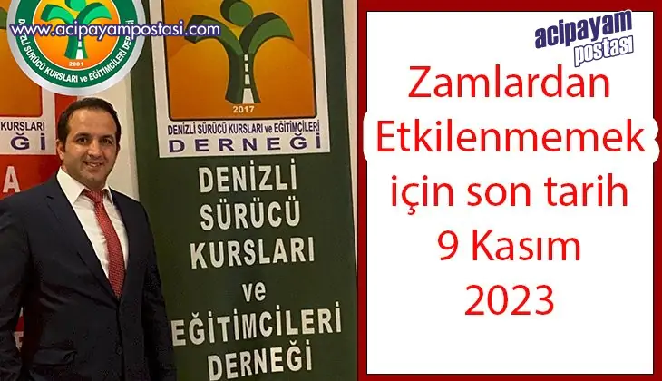 Denizli Sürücü Kursları ve Eğitimcileri Derneği Başkanı Özman Atalay vatandaşlara çağrı yaparak zamdan etkilenmemeleri için yıl Kasım ayının ilk haftasına kadar kayıt yaptırmaları gerektiğini açıkladı.