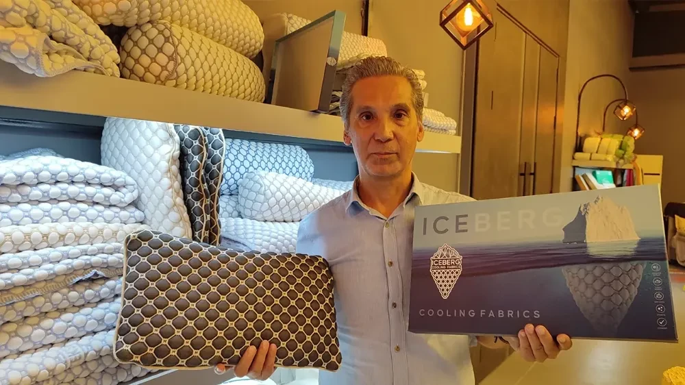 Terletmeyen kumaştan üretilen ürünlerin aşırı terleyenler içinde kurtarıcı olacağına dikkat çeken Dr. İsa Dal, “Özellikle son dönemde geliştirmiş olduğumuz ‘Terletmeyen’ kumaştan ürettiğimiz ürünler soğutma, serinletme özelliğine sahip. Denemelerini de kendimiz yaptık. Sadece Türkiye’de değil, dünya da aşırı sıcaktan ve terden şikâyet edenler konfor isteyenlerle bizim ürünlerimiz örtüştü. Bizde terletmeyen kumaştan yetişkinler için küçük yastık şeklinde silindir yastık, kare yastık, alez ve yatak pedi ürünlerimizi üç boyutlu bir teknoloji kullanarak yüksek teknolojiyle hazırladık. Farklı örgü teknikleriyle geliştirdiğimiz kumaşın yüzeyi buz dağının yüzeyini andıran bir yapı olduğu için kumaşımıza ‘Iceberg’ buzdağı ismini verdik. Bu isimle markalaştık. Denizli’de ürettiğimiz ürünlerin tamamı dünya ülkelerine ‘Iceberg’ markasıyla ihraç ediliyor’ dedi