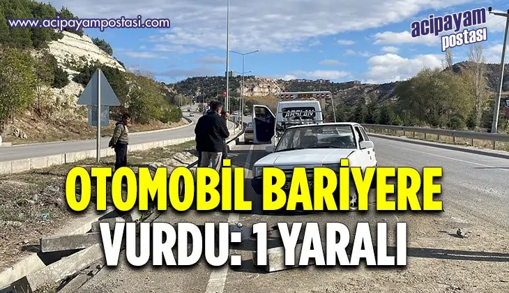 Burdur-Antalya karayolunda sürücüsünün direksiyon hakimiyetini kaybettiği otomobilin bariyere çarpması sonucu 1 kişi yaralandı.