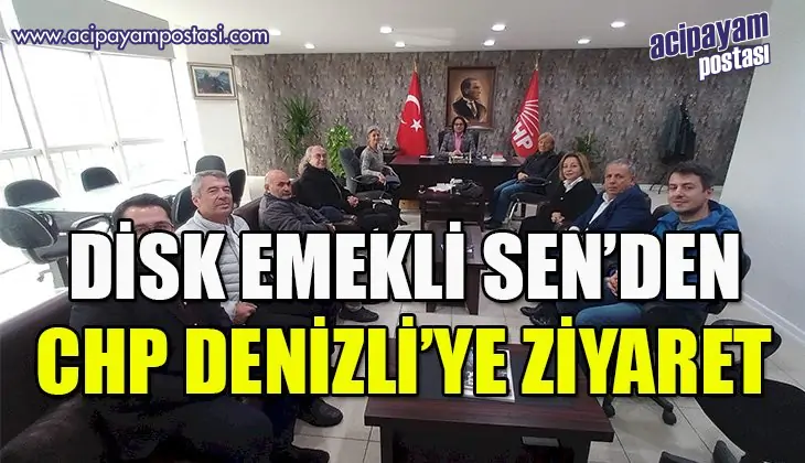 Disk Emekli Sen'den Denizli Şubesi, Cumhuriyet Halk Partisi Denizli İl Başkanlığı'nı ziyaret etti.Cumhuriyet Halk Partisi Denizli il Başkanlığı'ndan yapılan açıklamada, " DİSK Emekli Sen Denizli Şubesi Yönetim Kurulu Üyeleri ile il başkanlığımızda bir araya gelerek emeklilerimizin problemleri,beklentileri ve parti politikalarımız ile ilgili görüş alışverişide bulunduk. Nazik ziyaretleri için çok teşekkür ederiz" cümlelerini kullandı.