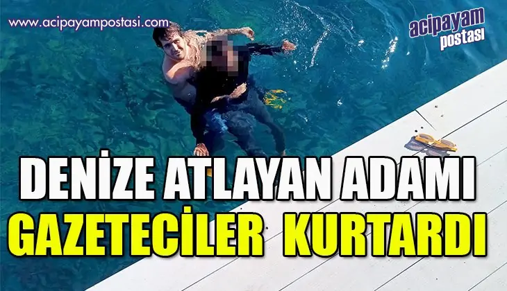 Edinilen bilgiye göre, ailevi sorunlar yaşadığı iddia edilen Şeref B., ilçedeki bir gazeteye ulaşarak Gümbet Mahallesi'nde ayağına kum torbası bağlayıp iskeleden aşağı atlayacağını söyledi. İhbarı alan basın mensupları olay yerine geldiğinde Şeref B. denize atladı. Şahsı kurtarmak için basın mensupları da denize atladı. İskeleye bağlı bir motoryattan bıçak alınarak Şeref B.'nin ayağındaki ip kesildi ve sonra bota bindirilen şahıs karaya çıkarıldı. İhbarın ardından olay yerine 112 Acil Sağlık ve polis ekibi sevk edildi. Şeref B., sağlık ekipleri tarafından ayakta tedavi edildikten sonra ifadesi alınmak üzere karakola götürüldü.