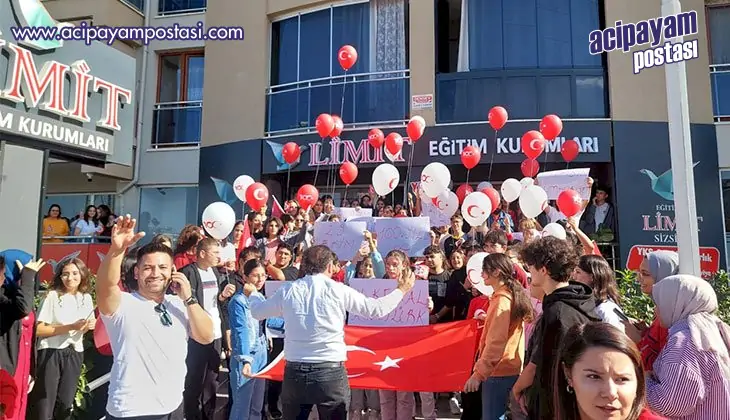 Denizli’de Limit Eğitim Kurumları 29 Ekim Cumhuriyet Bayramı ve Cumhuriyetin ilanın 100. Yılı nedeniyle Albayrak Şubesi önünde coşkulu kutlama yaptı. Limitli öğrenciler, öğretmenleriyle birlikte Albayrak Şubesi önüne ellerinde kırmızı beyaz balonlar, afişler ve pankartlarla bir araya geldi. Limitli öğrenci ve öğretmenler hep bir ağızdan ‘Yaşasın Cumhuriyet’, ‘Cumhuriyetin 100. Yılı kutlu olsun’. ‘Ne mutlu Türküm diyene’ sloganları attı. Sloganlar ve alkışlar eşliğinde gökyüzüne kırmızı beyaz balonlar uçuruldu. Limit Eğitim Kurumları Albayrak Şube Müdürü Soner Çamlı, “19 Mayıs 1919’da Gazi Mustafa Kemal Atatürk’ün Samsun’a çıkarak yaktığı özgürlük ateşi, Cumhuriyet’in ilanı ila nihai hedefine ulaşmıştır. Cumhuriyetimizin 100. yılını geride bırakmanın onurunu yaşarken, ikinci yüz yıla girmenin de heyecanı içindeyiz. Nitelikli ve kaliteli eğitim ile ülkesine milletine faydalı bireyler yetiştirerek Dünya’da fark yaratan bir ülke olmak yeni yüzyılda temel hedefimizdir. Atatürk’ün gösterdiği yolda, hedefe ulaşmak için gece gündüz bıkmadan yorulmadan çalışacağız. Başkomutan Gazi Mustafa Kemal Atatürk ve silah arkadaşlarını, aziz şehitlerimizi minnet, şükran ve rahmetle anıyoruz. Ruhları şad olsun. Yaşasın Cumhuriyet. Nice 100. Yıllara” dedi