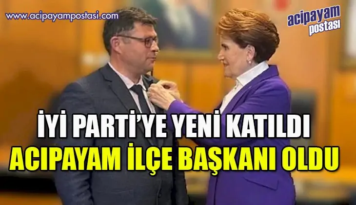 Geçtiğimiz günlerde İYİ Parti Genel Başkanı Meral Akşener tarafından parti üyeliği rozeti takılan Büyükşehir ve Acıpayam Belediyesi Bağımsız Meclis Üyesi olan Ertan Başkan, resmen İyi Parti Acıpayam İlçe Başkanlığı görevine getirildi.